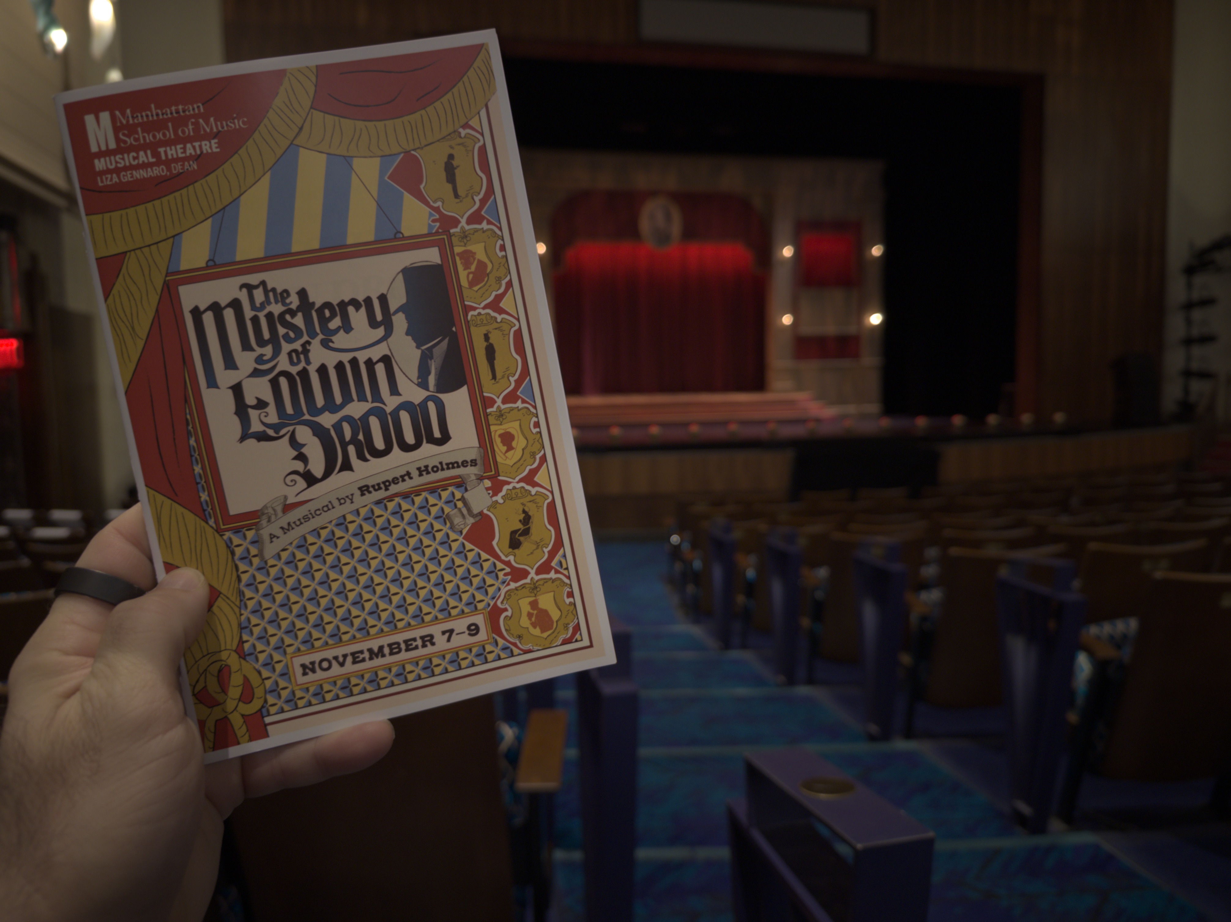 I saw The Mystery of Edwin Drood at the Manhattan School of Music on November 7, 2025, after grabbing tickets the moment I saw they were available. This is a show I have read about for years but never had the chance to see, mostly because it is not produced very often. Knowing how complex it is structurally, especially with its multiple endings decided by audience vote, I was excited and a little curious to see how a conservatory production would handle it.